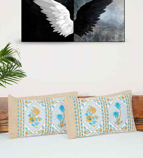 Blue Cotton Premium Quality 210 TC (18*28 Inches) Pillow Covers Set