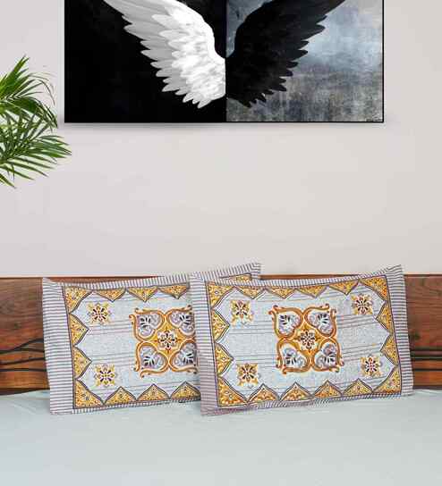 Yellow Traditional 180 TC Cotton Pack of 2 Pillows Covers