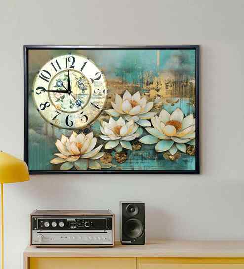 (1Pc) Blue Canvas Painting Clock Wall Art