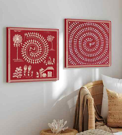 (Pack Of 2) Multicolour Canvas Traditional Indian Wall Art Panels
