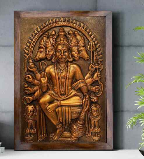 Fibre Panchmukhi Hanuman Relief Mural Bronze