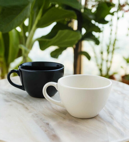(Set Of 2) Animal Bone Ash Free Stoneware Black & White Coffee Tall Mugs