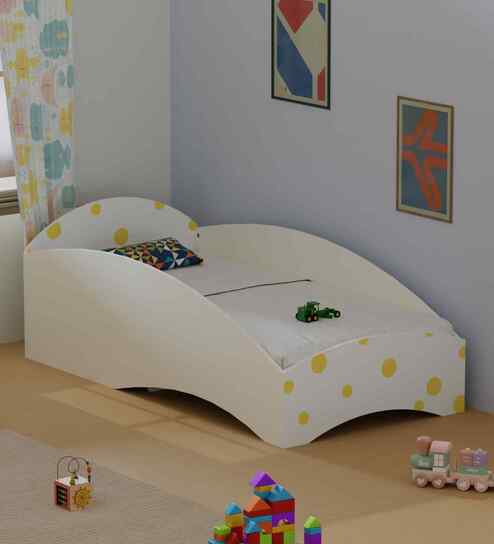 Minimalist Kids Toddler Bed in White and Yellow Finish