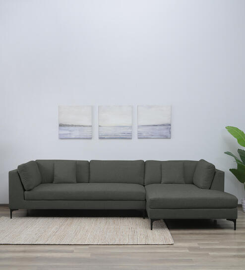 Jauna Fabric RHS Sectional Sofa (3 + Lounger) In Grey Colour