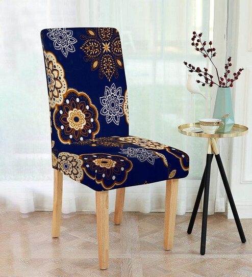 Blue Printed Polyester 15x19 Inches Stretchable Chair Covers (Set of 4)