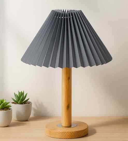 Pinewood Table Lamps, Fabric Linen Lampshade, Pleated Grey