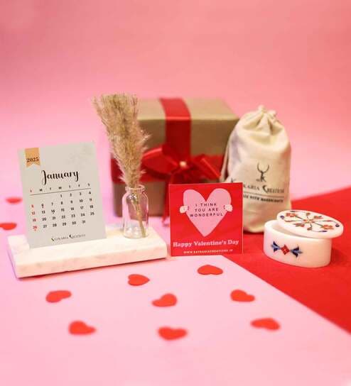 Calendar 2024 White Marble & Paper Desk Organizers