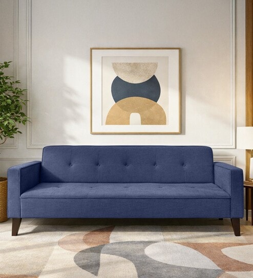 Nebia Fabric 3 Seater Convertible Sofa Cum Bed In Navy Blue Colour