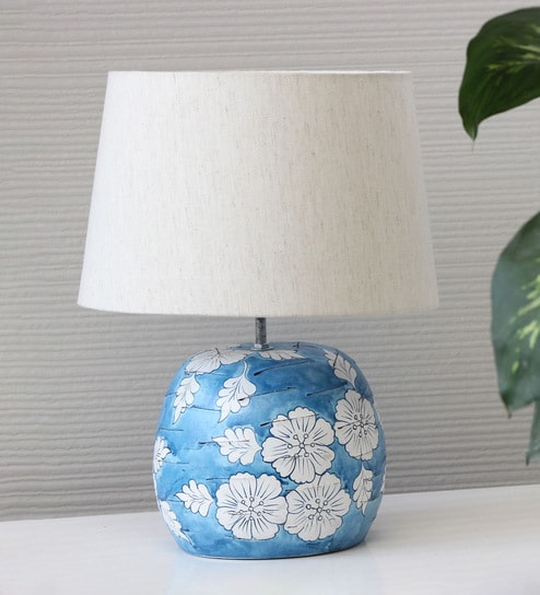 Distress Finish Blue Beautiful Design Clay Table Lamp
