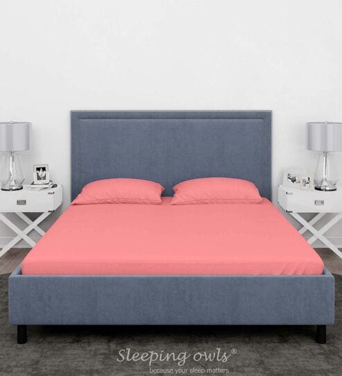 Pink Cotton Solid Finest 300TC Plain Super King Bedsheet with 2 Pillow Covers