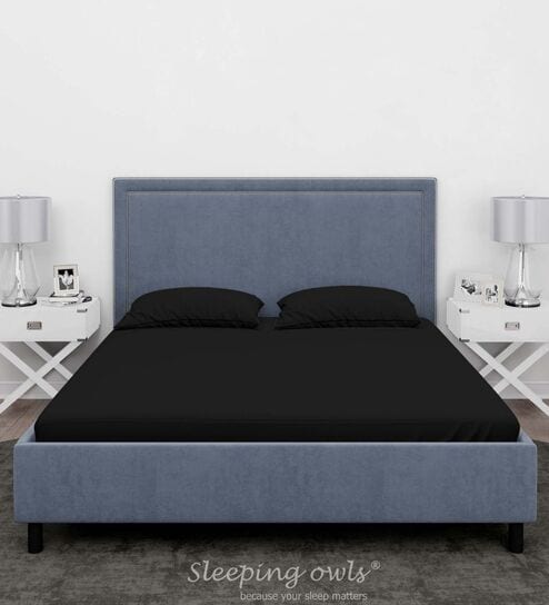 Black Cotton Solid 210TC Plain Super King Bedsheet with 2 Pillow Covers