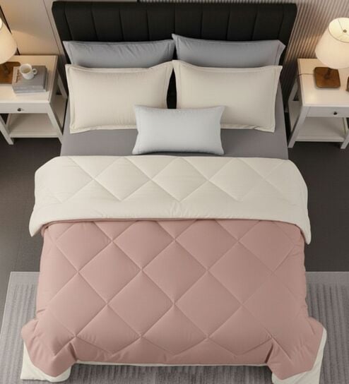 Pink Cotton 210TC Printed All Weather Double 150GSM Bedding Set 1 Comforter 1 Bedsheet 2 Pillow Covers