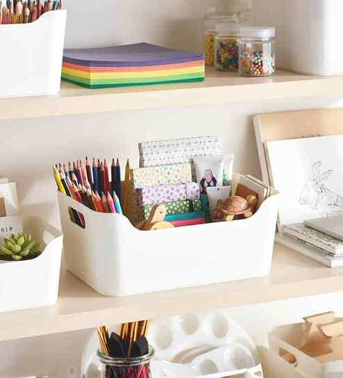 Ecru White 4.32 L Modular Polypropylene Storage Basket with Cut-Out Handles