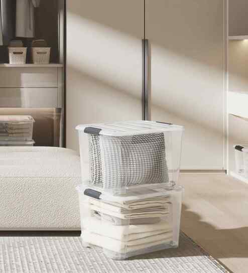 Transparent Storage Box with Lid, Handle & Wheels Stackable Polypropylene Organizer