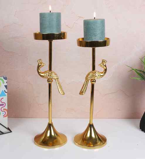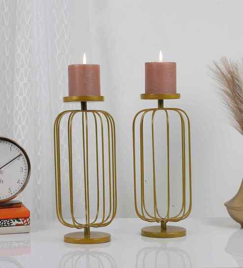 Metal Round Base Candle Stand Set of 2