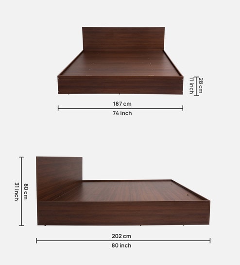 Seto King size Bed in Planket Walnut Finish With Full Hydraulic Storage