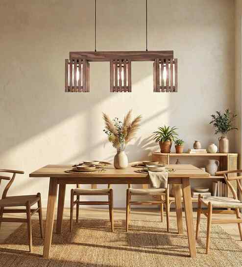 Elegant 3 Lights Brown Solid Wood Linear Chandelier Cluster Hanging Light