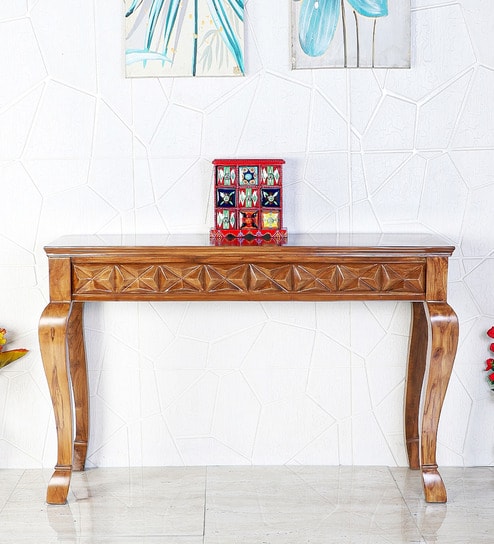 Vortex Teak Wood Console Table In Teak Colour
