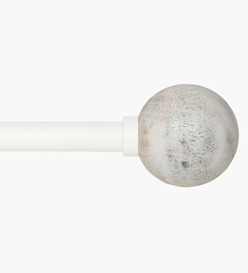 Ivory Iron Adjustable Rustproof Brackets Curtain Rod Wood Ball Finials (19MM Diameter)