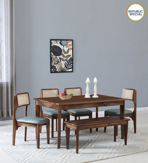 Gistel Sheesham Wood 6 Seater Dining Set In Scratch Resistant Provincial Teak Finish With Bench