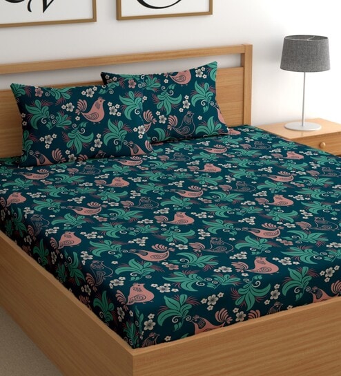 Peacock 180 TC Floral Cotton Queen Double Bedsheet 2 Pillow covers