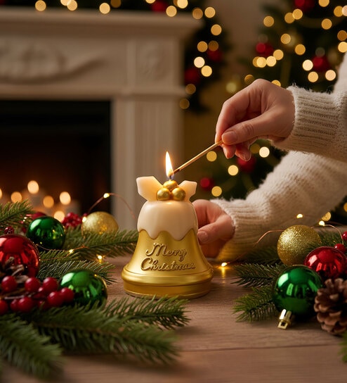 Christmas Candle Golden Bell Design with Gift Box Golden Vanilla