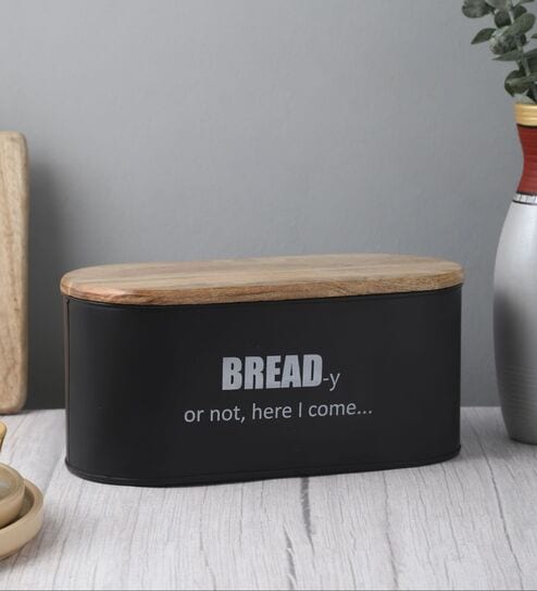 Ardura Black Metal Bread Box with Wooden Lid