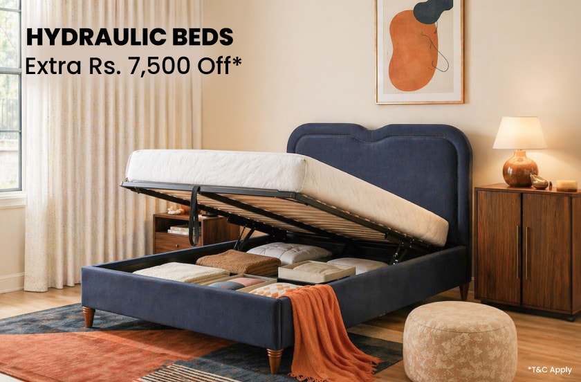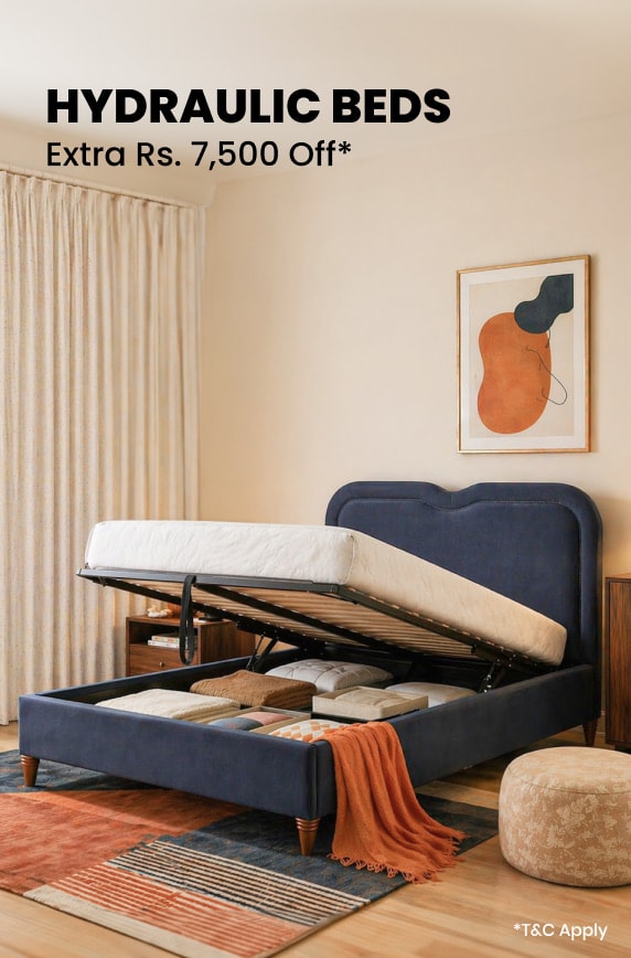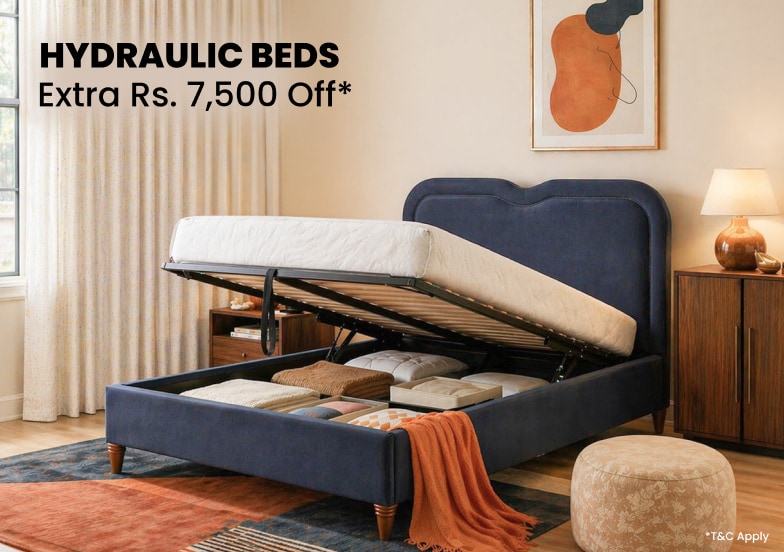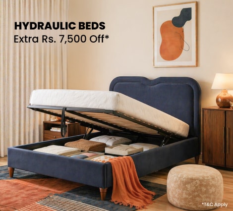 King-size beds offer spacious comfort and elevate the look of any Indian bedroom. Pepperfry provides a wide range of designs, from sturdy wooden frames to modern hydraulic king-size beds with storage, ensuring both style and practicality.