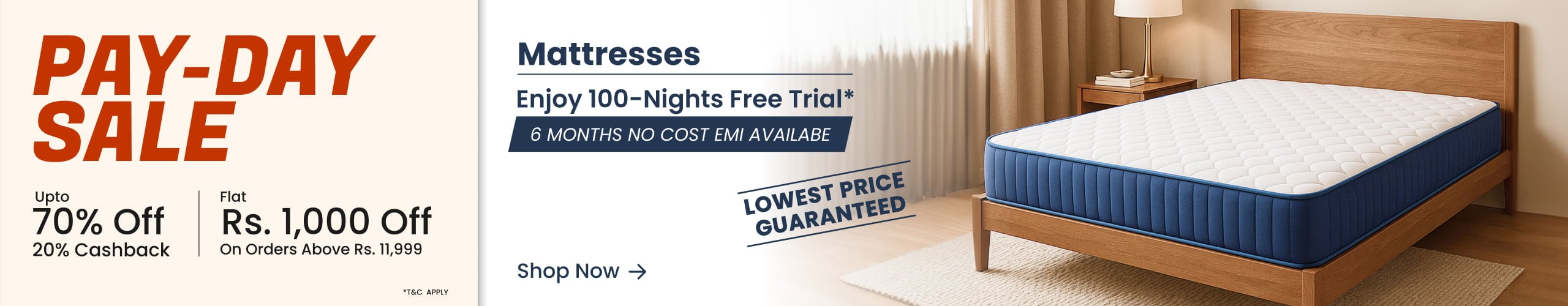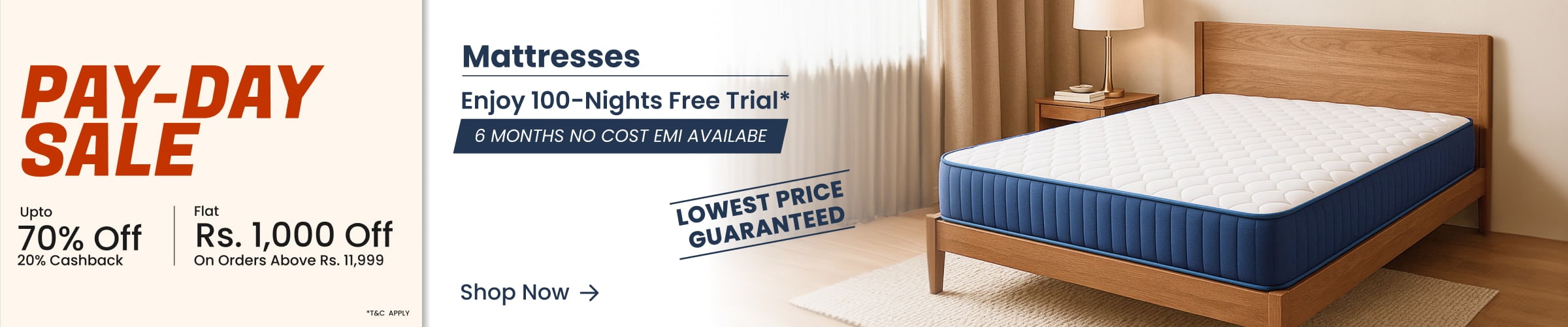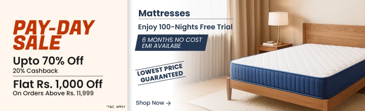Our mattress online shopping experience, complete with detailed specifications, customer reviews, and hassle-free delivery, makes upgrading your sleep quality convenient and reliable. For comprehensive bedding shopping, make sure to check our extensive range of beds, mattress toppers, pillows and more. Your journey to better sleep starts with a single click at Pepperfry.