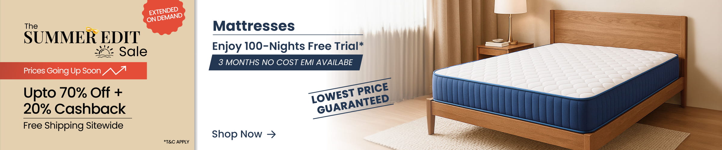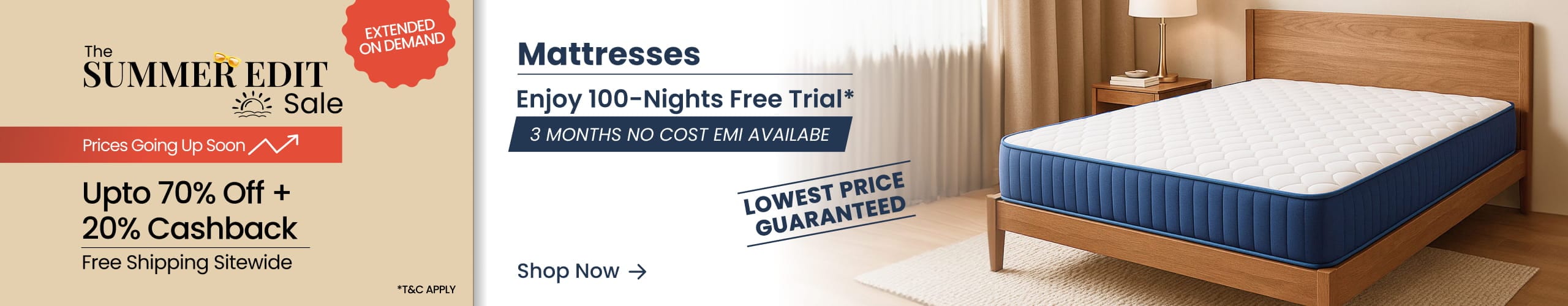 Experience ultimate comfort with Pepperfry's extensive collection of mattresses , designed for every sleeping preference and budget. From memory foam mattresses to orthopaedic options, our range ensures restful nights and energised mornings. Choose