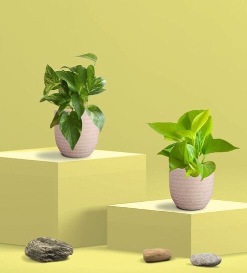 Greenkin Golden Money Plant & Pink Plant in Eco pot