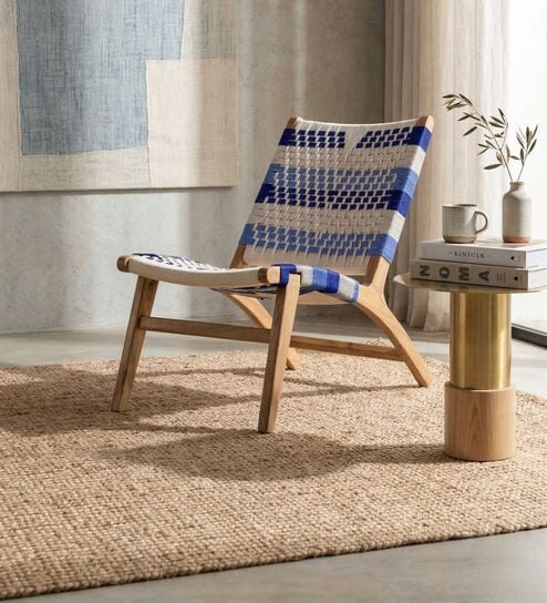 Bunai Rope Easy Chair Natural And In Ocean Blue Colour