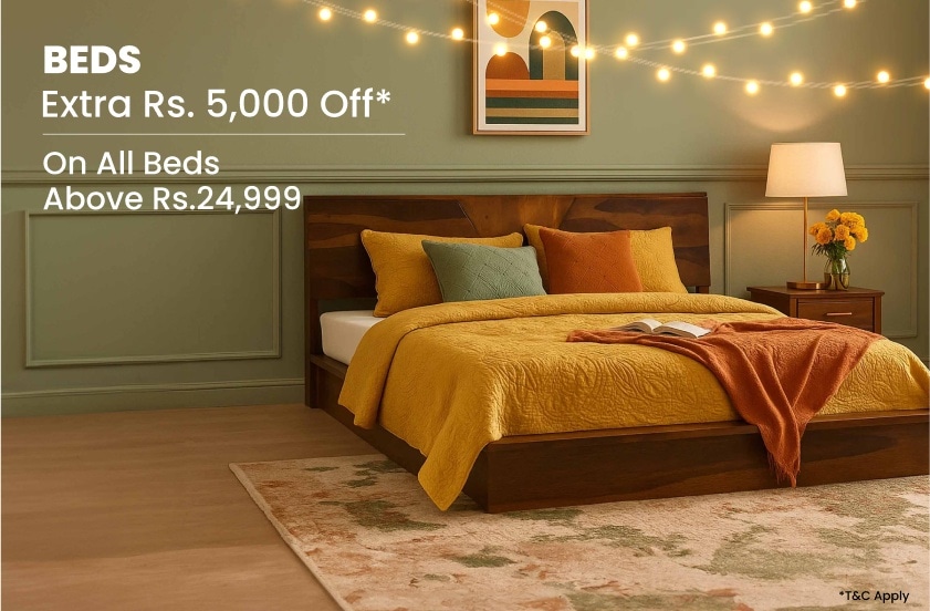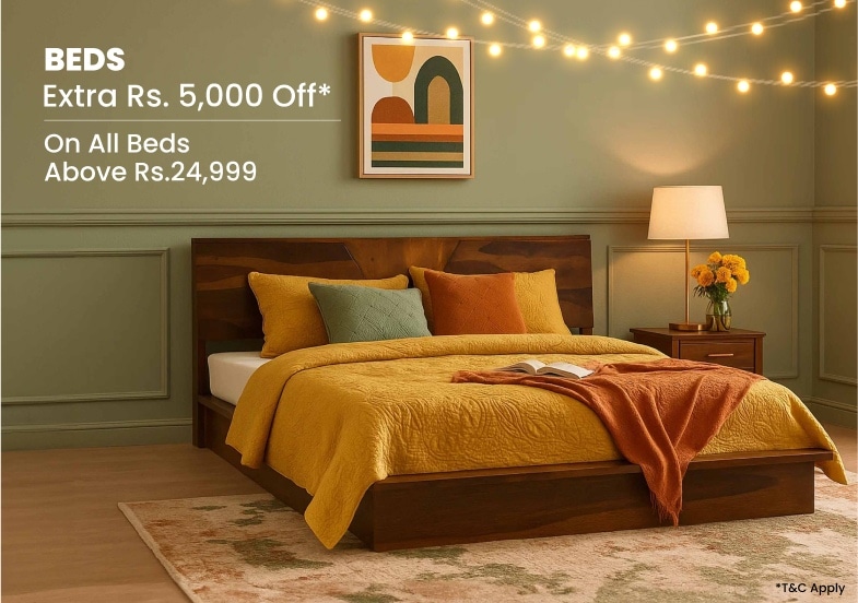 Pepperfry allows one to explore a wide variety of queen-size beds from the ease of one's home. Online shopping saves time and money, while secure payment methods like UPI and cash on delivery give one safety and flexibility.
