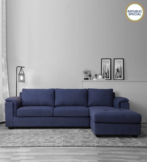 Andres Fabric LHS Sectional Sofa (3 + Lounger) In Navy Blue Colour