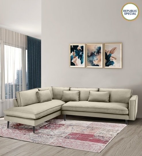 Mireya Fabric LHS Sectional Sofa (3+ Lounger) In Beige Colour