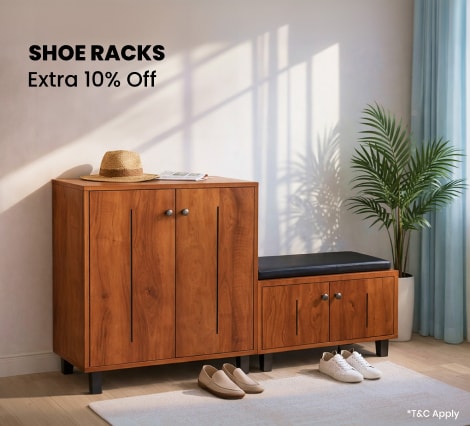 • Home Delivery: When you buy a shoe rack online, it gets delivered to your doorstep, saving you the effort of transportation. Large wooden shoe racks or cabinets can be heavy to carry from a store, but online shopping removes that stress. Pepperfry handles packaging and delivery safely, ensuring the product reaches your home in good condition.