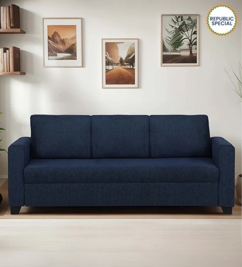 Bingo Fabric 3 Seater Sofa In Cool Cobalt Colour