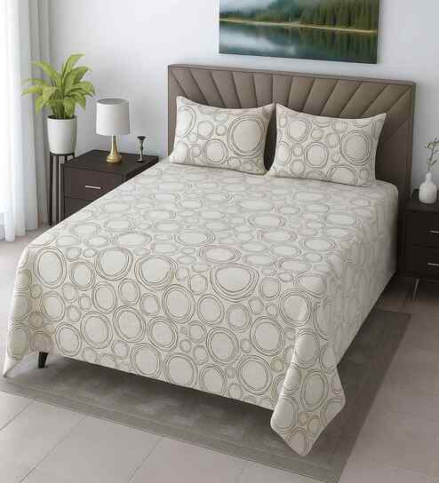 Like abstract shapes? Opt for a bedsheet like the Inhouse Donatella 210 Tc Cotton King Bed Sheet With 2 Pillow Covers by Maspar.