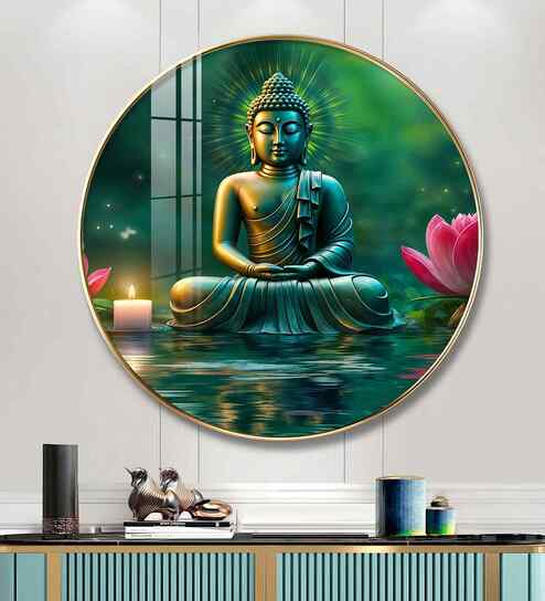 Buddha'S Reflection With Sacred Lotus Acrylic Round Wall Art