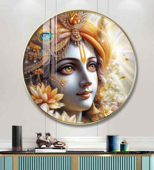 Divine Harmony Of Krishna Acrylic Round Wall Art