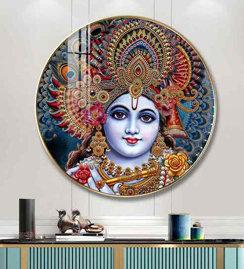 Shri Krishna With Bansuri Acrylic Round Wall Art