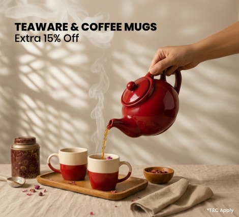Discover the art of tea-drinking with Pepperfry's exquisite Teaware assortment. We understand the importance of savoring the perfect cup of tea, and our teaware is designed to enhance your tea-drinking experience. Explore our range of teapots, tea cups, infusers, and kettles to make every tea moment special.