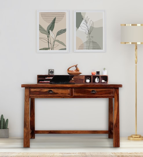 Amiens Sheesham Wood Study Table In Honey Oak Finish With Drawers