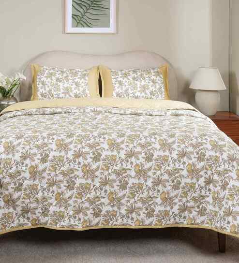 Blue Cotton Geometric Print 110 GSM Double Bed Quilt