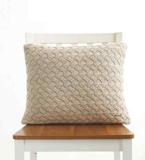 Beige Cotton 16X16 Inches Knitted Cushion Cover