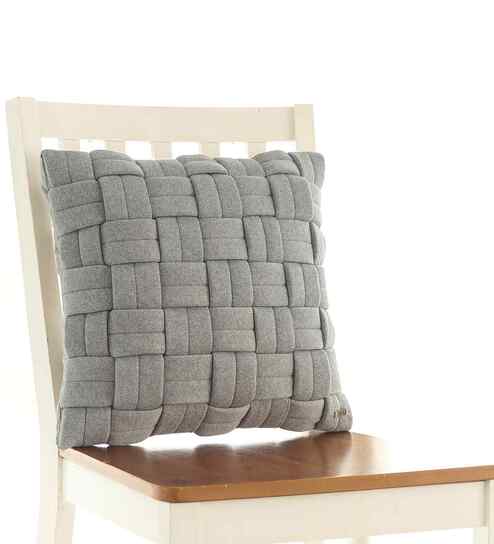 Medium Grey 100% Cotton Elegant 22X22 Inches Knitted Cushion Cover
