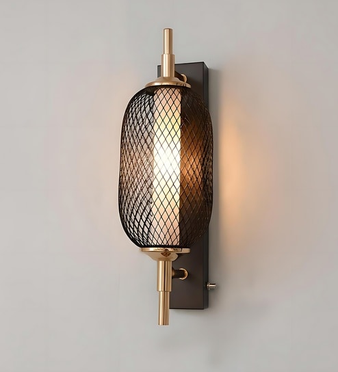 Netlume Wall Lamp | Modern Decorative Mesh Design | Golden Black Finish | Metal Body | Warm White LED | Wall Light for Home, Bedroom, Living Room, Hall & Office | 1Year Warranty
