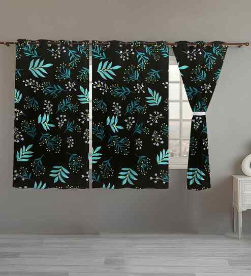 Black Polyster Floral 5ft Sheer Eyelet Window/Door (1 Pc)