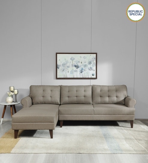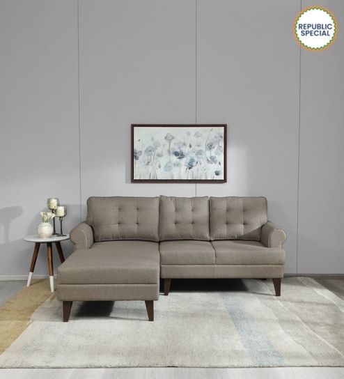 Impero Fabric RHS Sectional Sofa (3+ Lounger) in Sandy Brown Colour