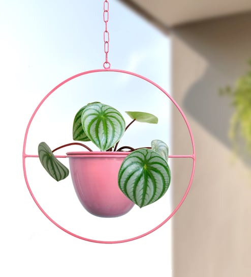 Set Of 2 Pink Hanging Metal Plant Stand